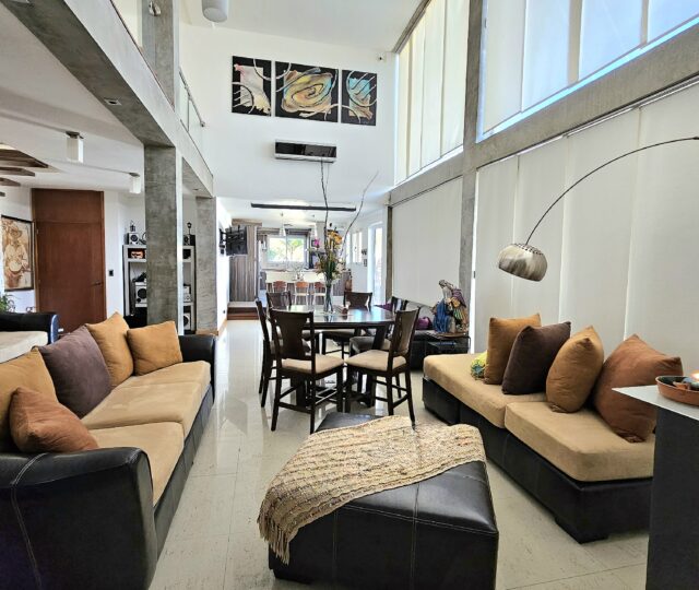 - Sala-estar con hermosos ventanales doble altura
